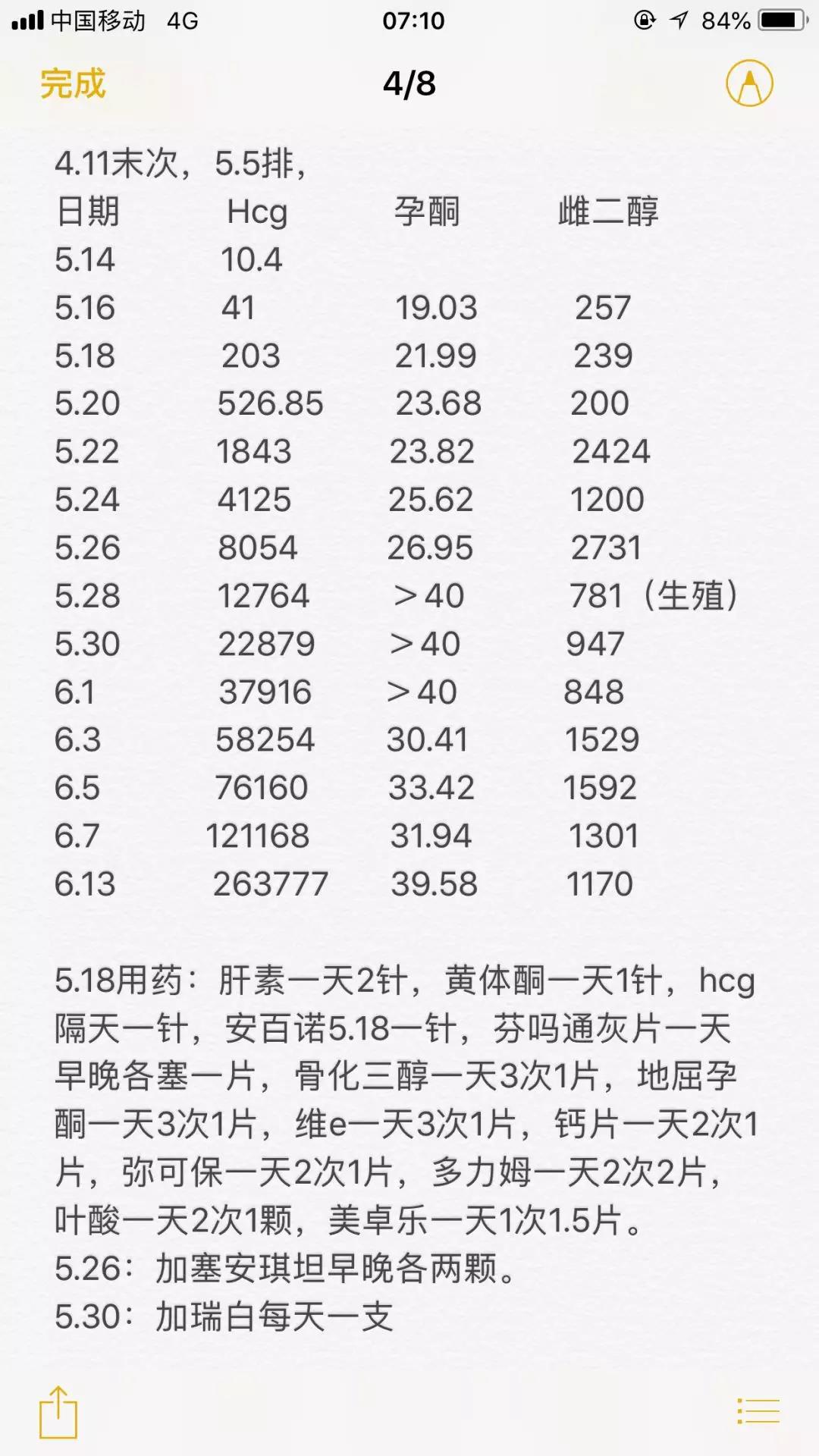 5月14号排卵第9天,心急的去医院测了hcg10,忍不住激动的心情,打电话给猪先生分享,接下来就开始了我隔天一次的监测,和几天一次的去生殖报道,开始,一天要打4到5针,因为上着班,没办法去诊所,肚子上的自己打,屁股的针猪先生打,猪先生信心满满的说,打针怕什么,然后打得时候手抖得不行,保胎过程中又给国家培养了一位男护士。